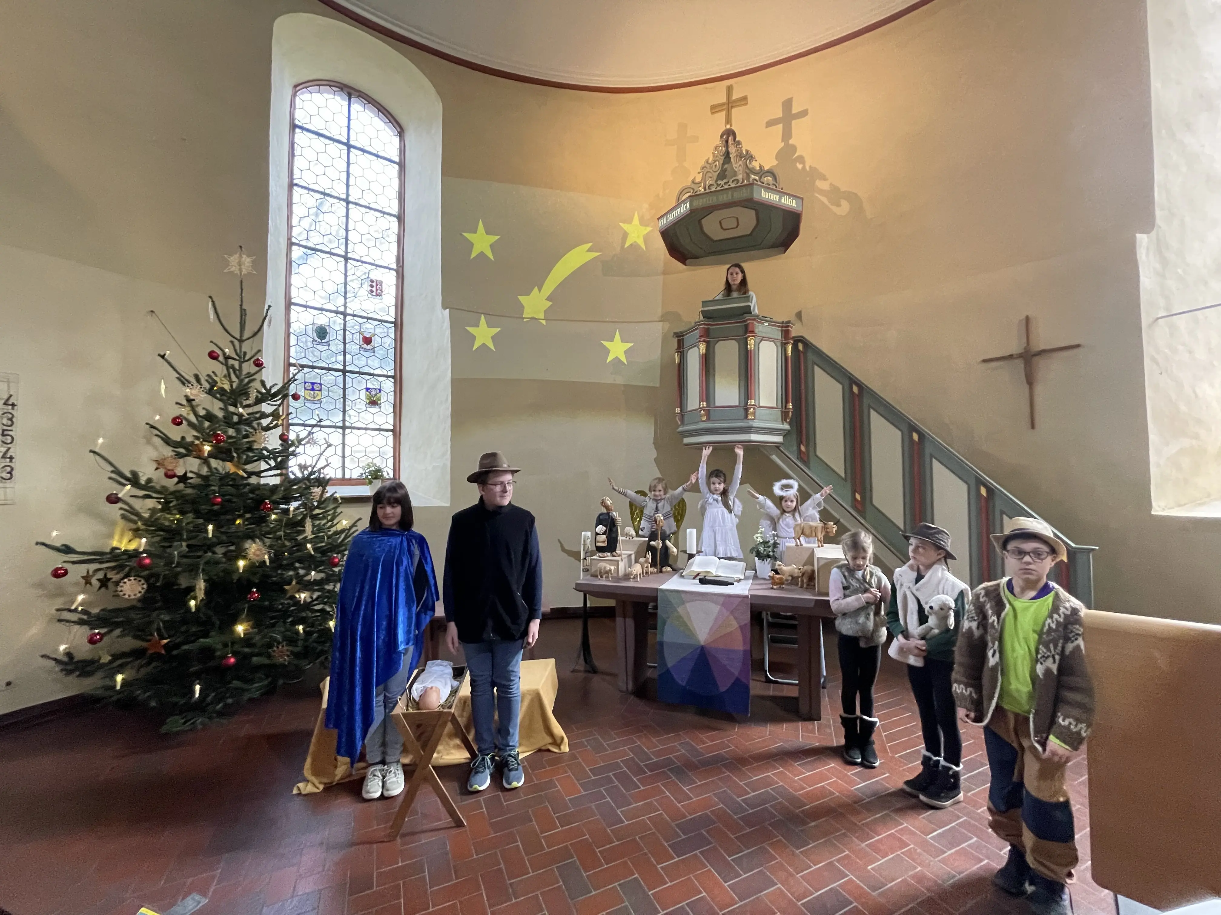 24.12.2025 15:30 Uhr Familiengottesdienst mit Krippenspiel. Pfarrerin Malsy und Team